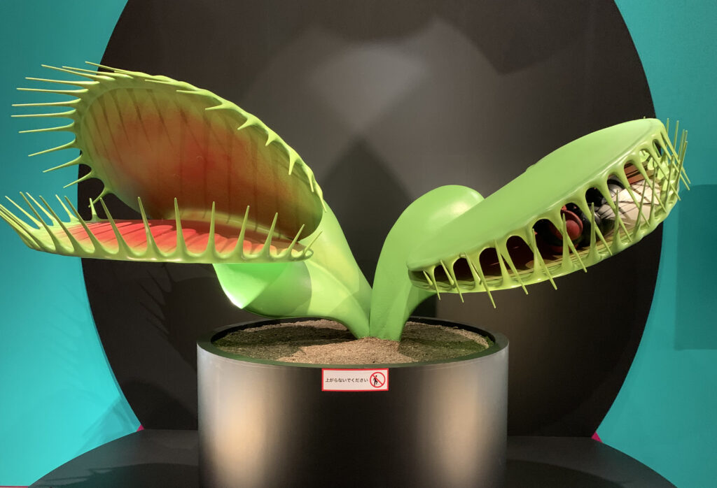 私のお目当ては「本当は怖い植物たち」の展示エリアです。いきなりハエトリソウの巨大模型(約100倍拡大模型)が出迎えてくれます。