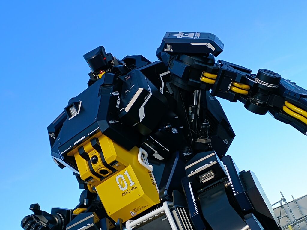 「アーカックス」はSFに出てくるような大型ロボットに実際に乗り込んで操縦できる、ロマンあふれる存在。全高4.5メートル、重量3.5トン、フル電動駆動。関節の数は26で、腕/ハンド/腰/頭/前脚が動作し、前輪ステアリング/後輪駆動で移動。胴体内部にコックピットがあり、4面ディスプレイに表示されるカメラ画像を見つつジョイスティックとペダルで操縦。全身の操作が可能ロボットモードと走行に特化したビークルモードにモードチェンジします。